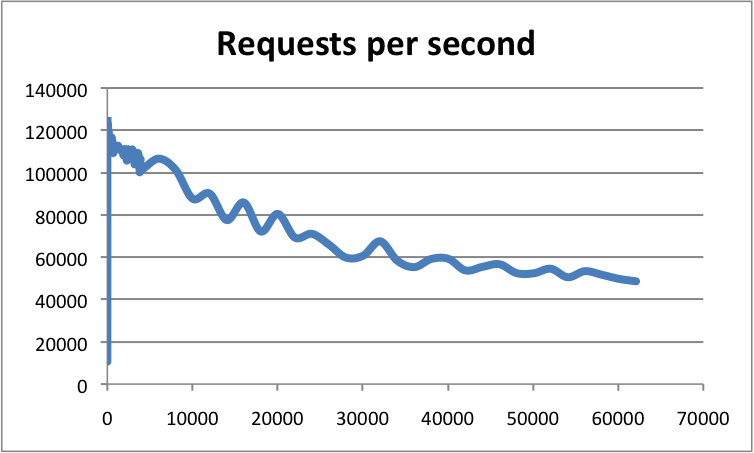 下图截选具体的测试结果,横轴是连接数量,纵轴是QPS。